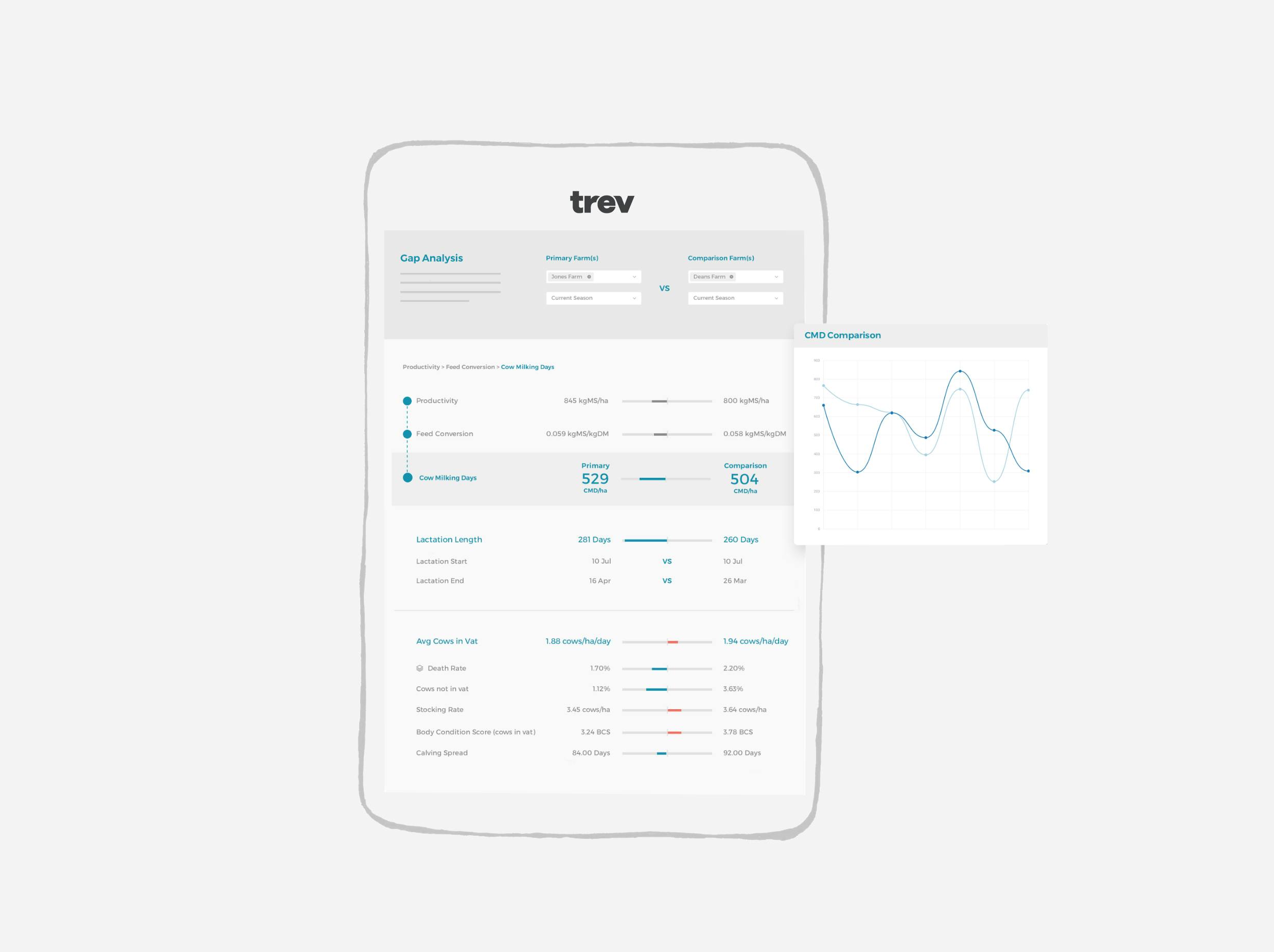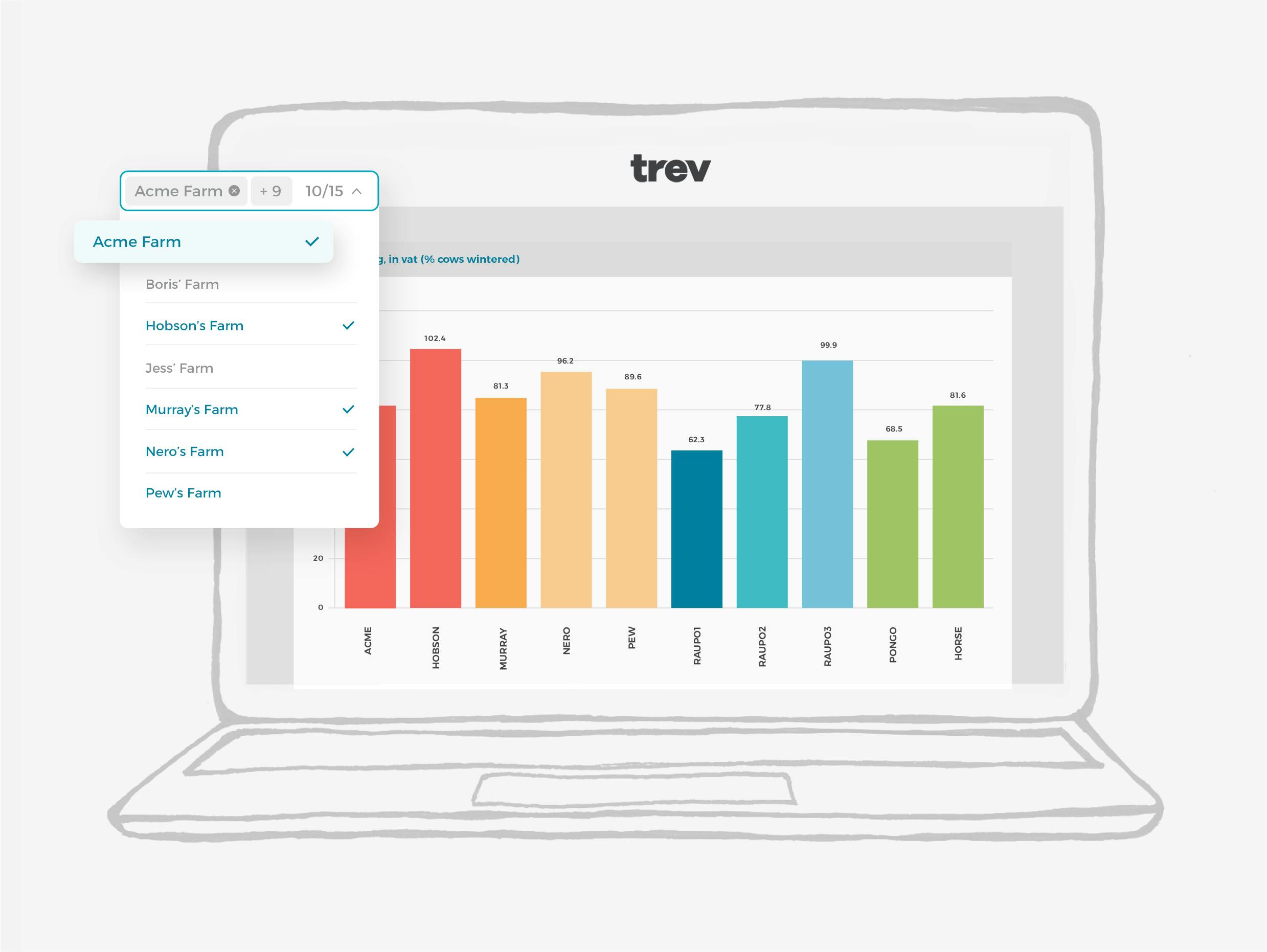 Trev pulls your operational data into one place, giving you a clear view of what’s happening on farm and where your team needs to focus.