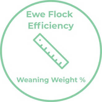 Ewe Flock Efficiency Equation: # of lambs weaned from ewes x average lamb weight at weaning from ewes = (a) / by number of ewes mated x by average ewe weight at mating. a/b x 100 = % so the higher the percentage the more efficient your ewe flock is.
